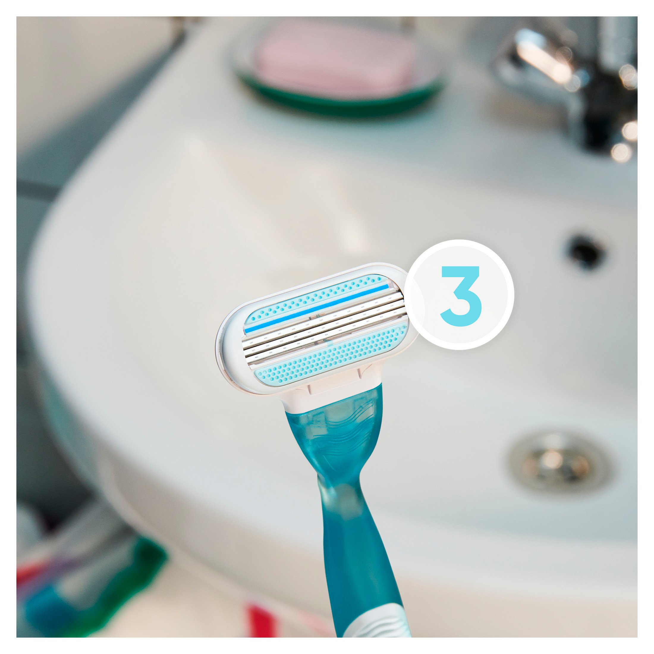 - Trojitý břit je obklopen ochrannými polštářky pro hladké oholení bez podráždění