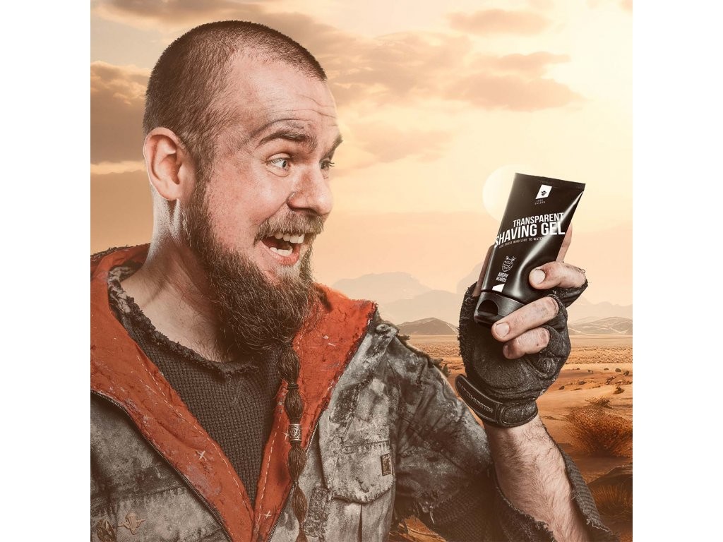 Transparentní gel na holení Angry Beards s oblíbenou pánskou vůní Jack Saloon změkčuje vousy, zabraňuje podráždění pokožky a zlepšuje skluz holicího strojku.