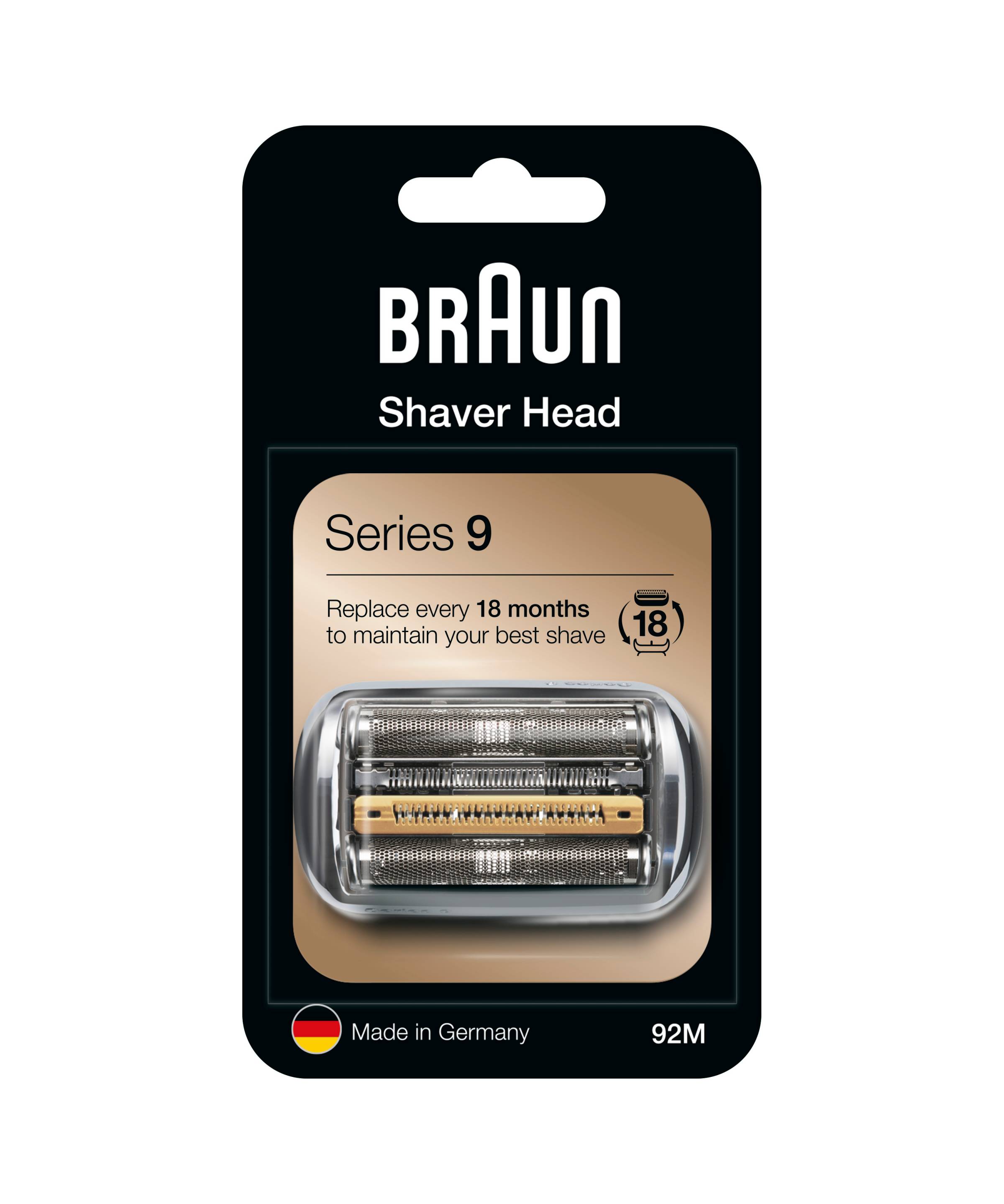 Braun 92M je praktickou kombinací, která se skládá z břitového bloku a holicí fólie. Planžeta má středovou střihací lištu potaženou titanem.