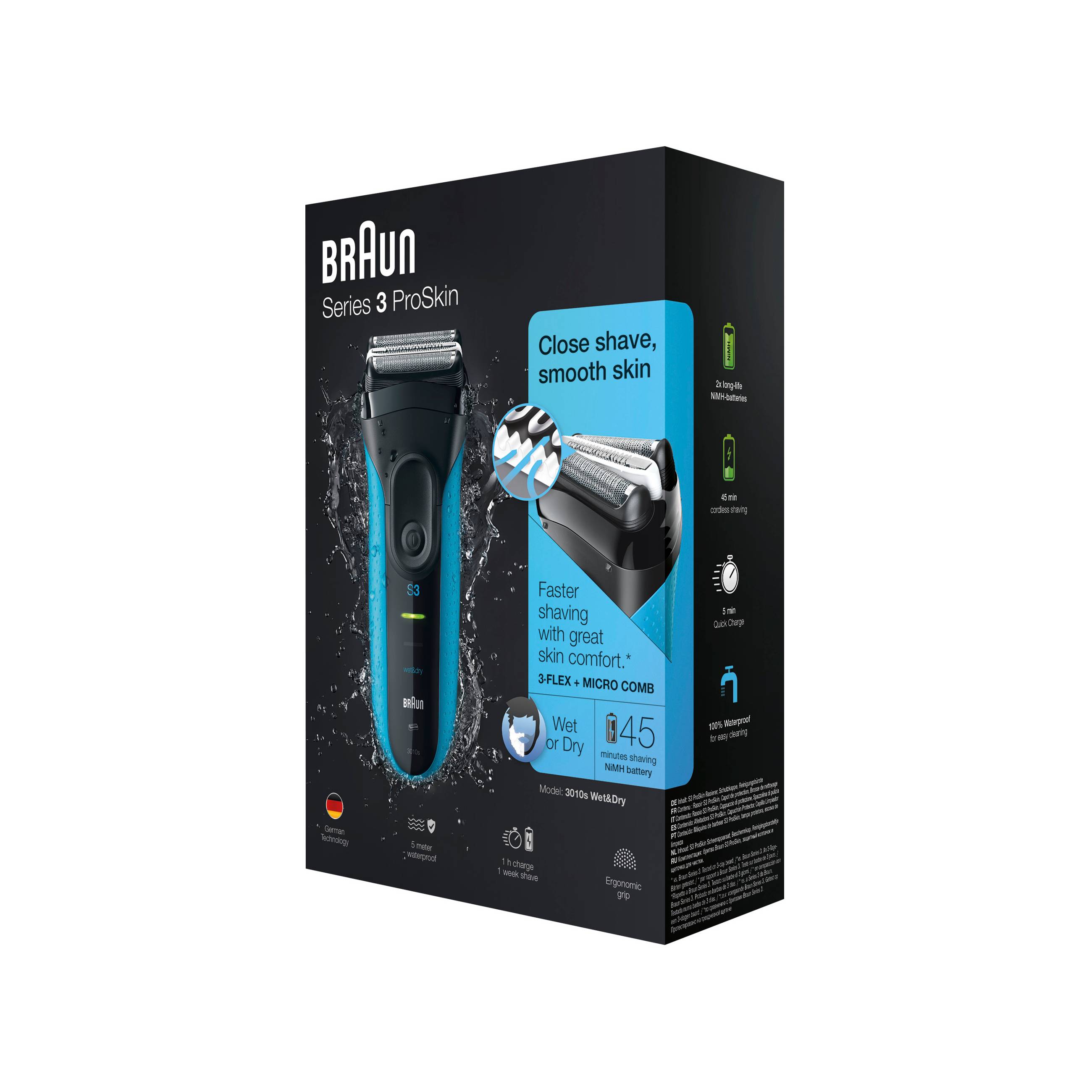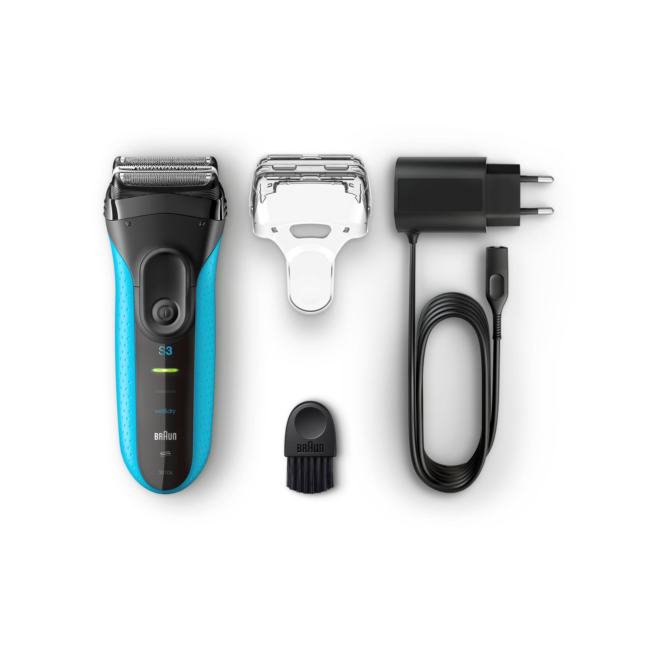- 1× holicí strojek Braun Series 3 3010s v modré barvě