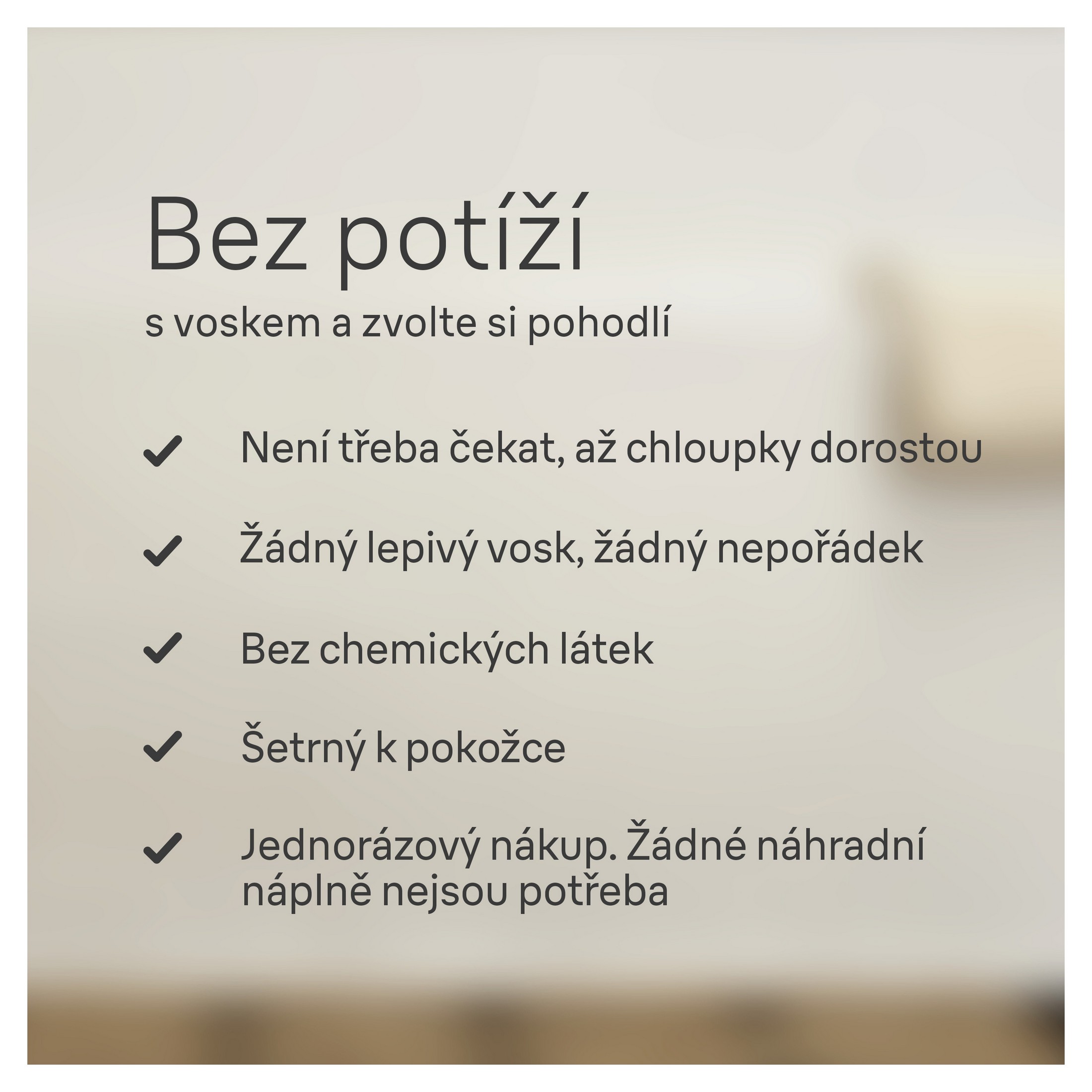 - Epilujte podpaží, nohy, oblast bikin i tvář