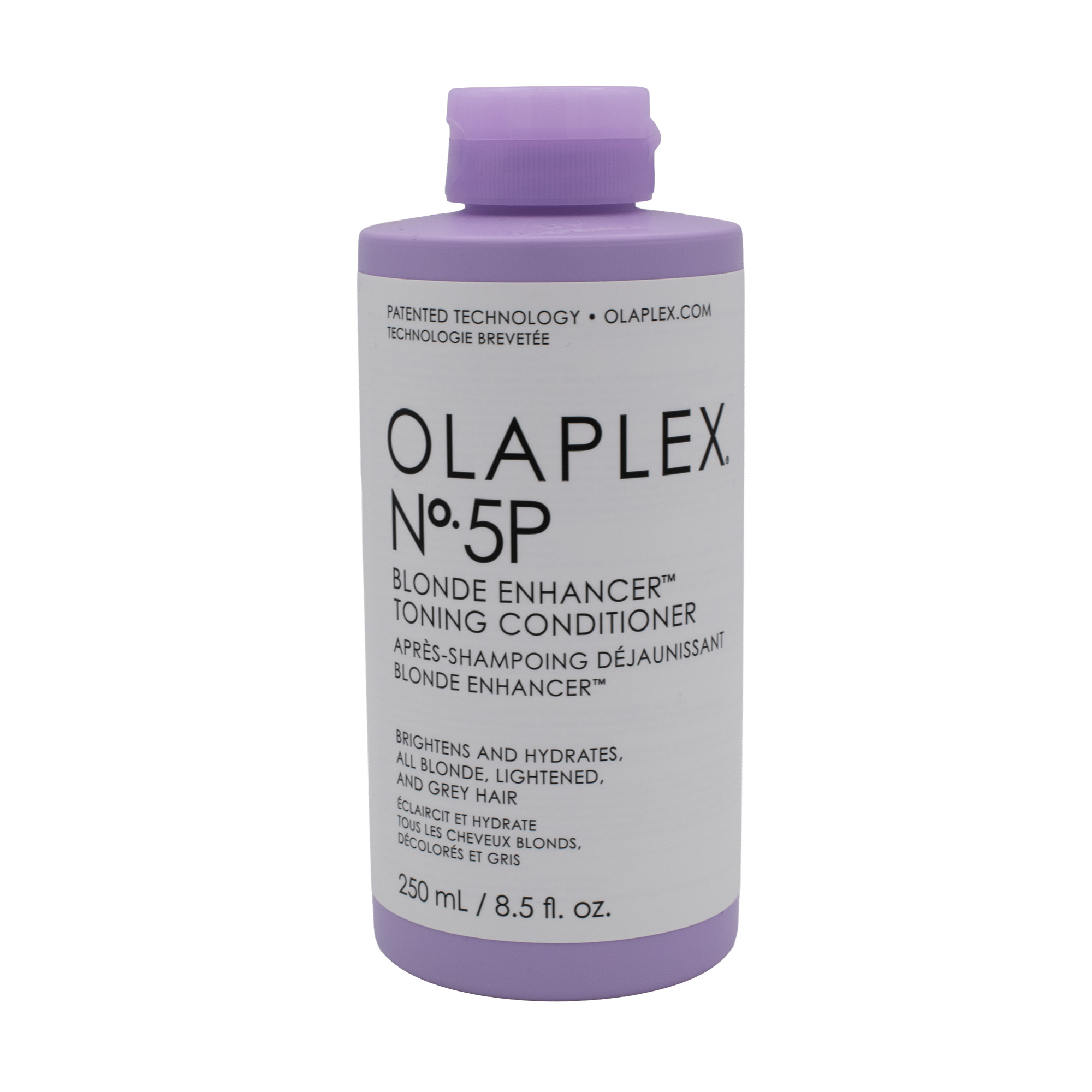 Fialový kondicionér Olaplex N°5P Blonde Enhancer Toning pro blond, zesvětlené a šedivé vlasy neutralizuje žluté tóny, hydratuje a zanechává vlasy hladké, lesklé a posílené díky bond-technologii Olaplex.