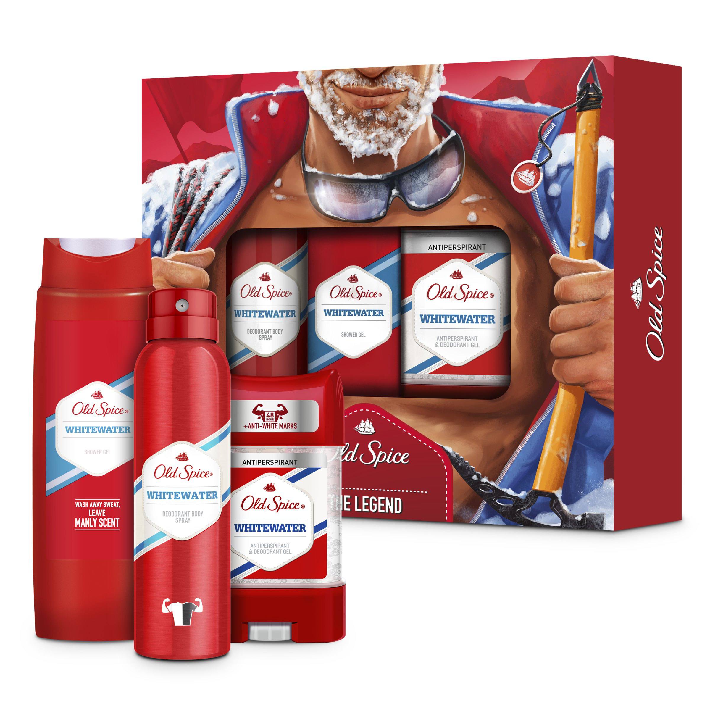 Pořiďte vašemu muži stylovou dárkovou sadu Old Spice Whitewater Alpinist Trio. V balení najdete vše pro osvěžení celého těla - gelový antiperspirant, tělový sprej a sprchový gel. To vše v jemné, svěží vůni Whitewater.