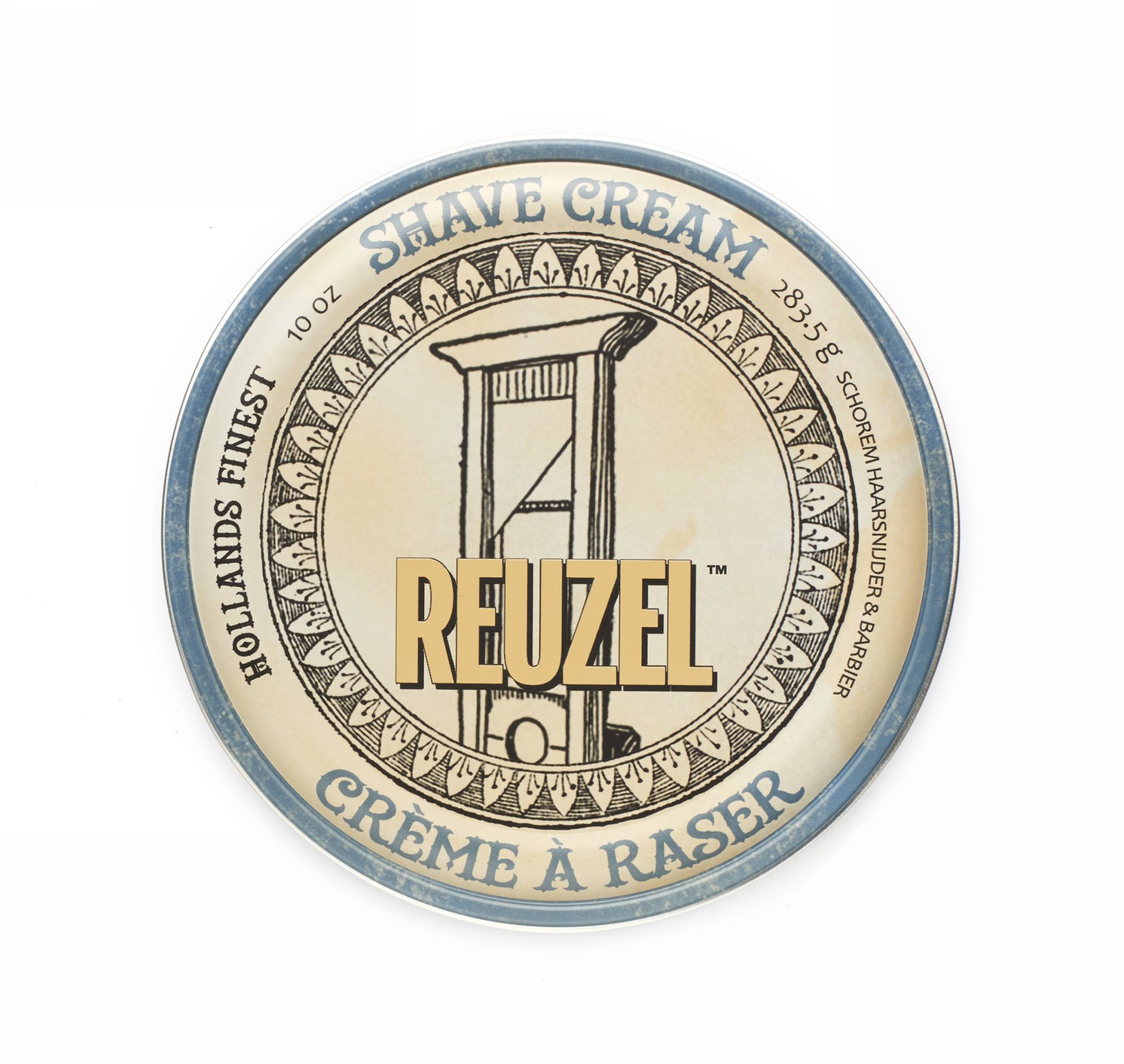 Holicí krém Reuzel ve stylové plechové dóze se snadno nanese na tvář pomocí štětky na holení. Zamezuje podráždění pokožky a hydratuje ji.